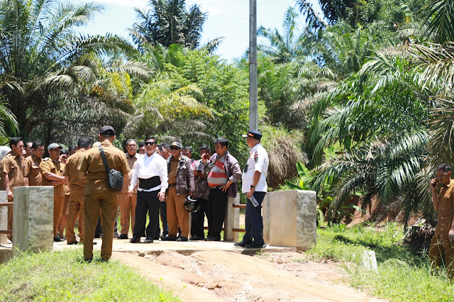 Bupati Simalungun di dampingi Kabid Bina marga Agus Intra M Sinaga langsung turun di lokasi melihat kondisi jalan.Tampak jalan yang Masi tergenang air luapan air sungai .